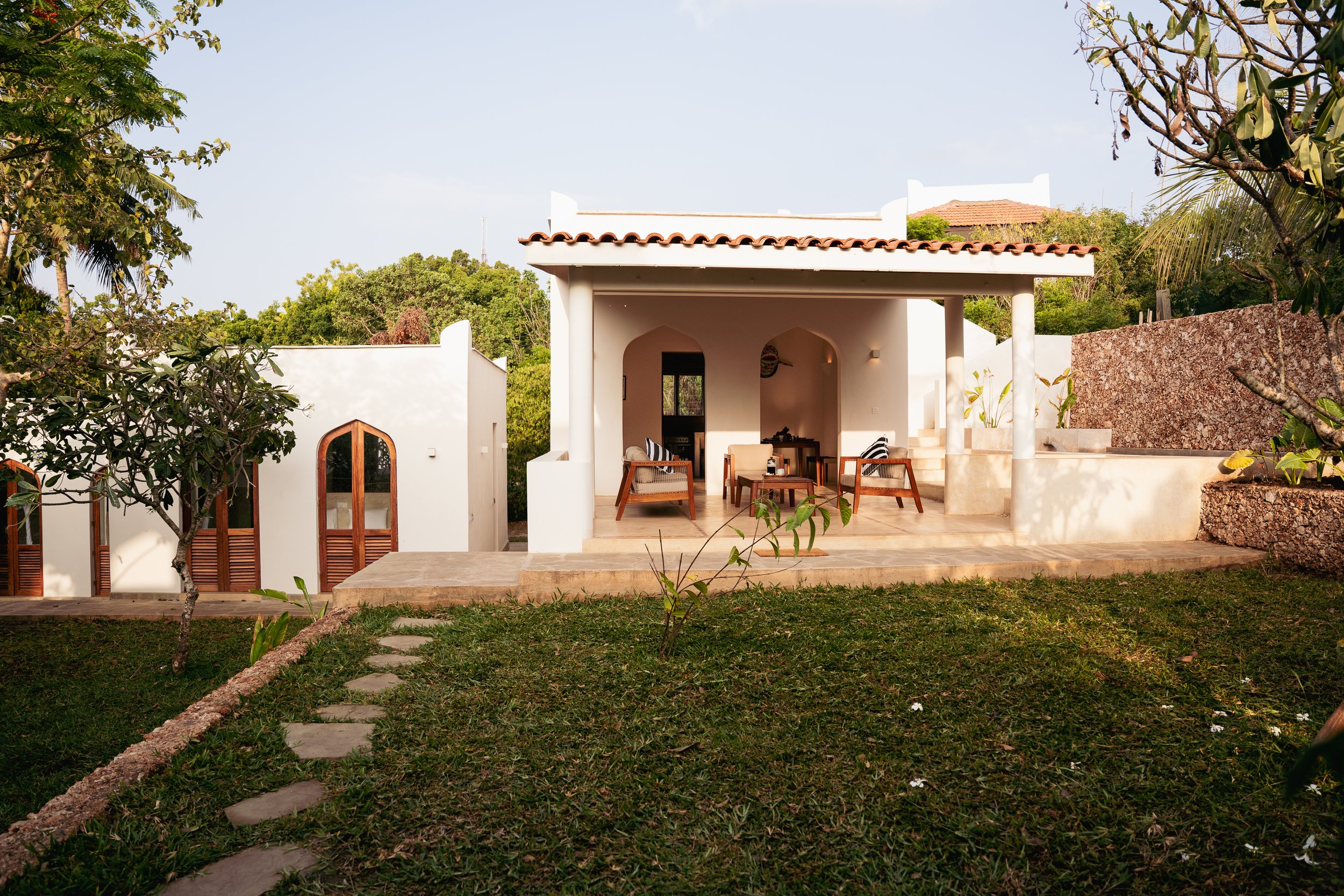 Wake up to garden views in two spacious, light-filled en-suite bedrooms, designed for comfort and tranquility. With large doors inviting in the natural beauty, each room offers a peaceful retreat to unwind and recharge. Both bedrooms have king size beds, a ceiling fan and a mosquito net.